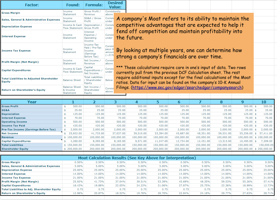 With the Discounted Cash Flows & Moat Valuation worksheet, you will: