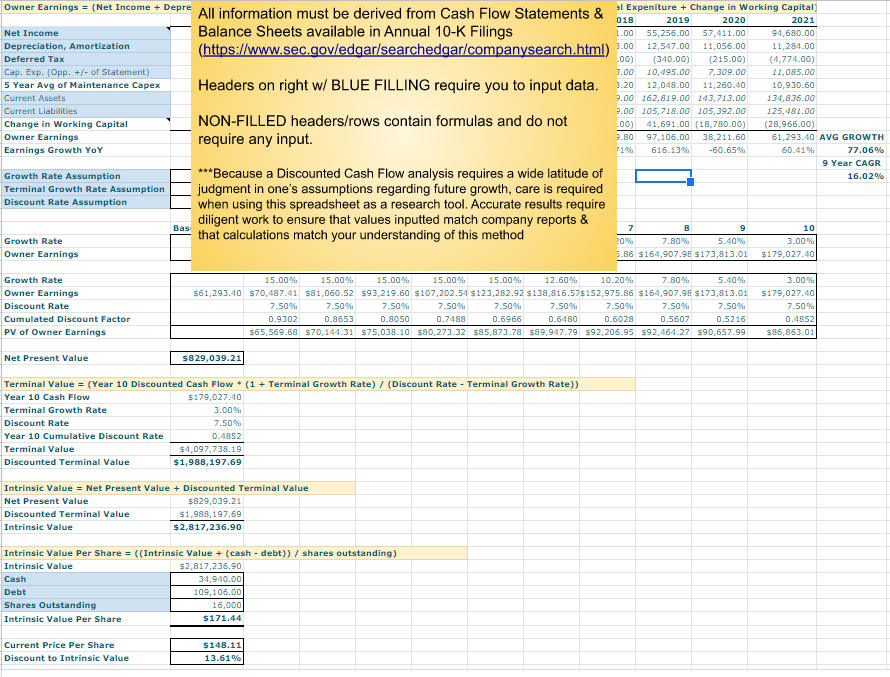 ***Does not constitute investment advice as the variables are based on your own research, quality of data entry & assumptions.